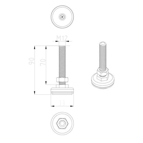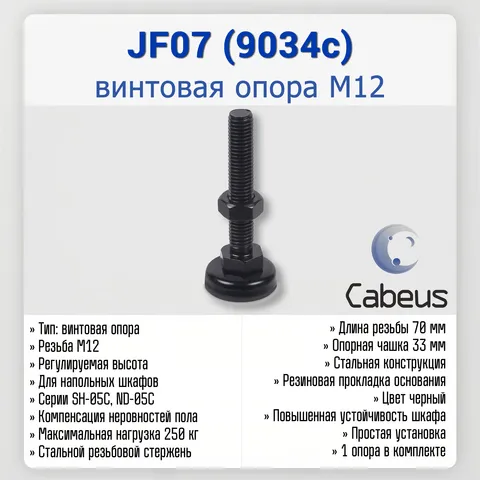 Cabeus JF07 — регулируемая винтовая опора, предназначенная для компенсации неровностей пола и выравнивания напольных серверных шкафов Cabeus серий SH-05C и ND-05C.