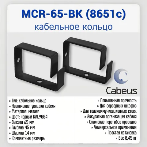 Cabeus MCR-65-BK — металлическое организационное кольцо, предназначенное для аккуратной и безопасной укладки кабелей в серверных шкафах и телекоммуникационных стойках. Используется для предотвращения перегибов, изломов и хаотичного расположения кабельных линий.