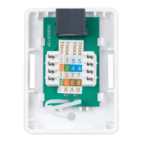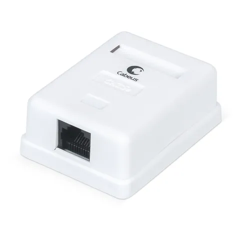 Cabeus WS-8P8C-Cat.5e-1 — неэкранированная внешняя компьютерная розетка категории 5e для настенного монтажа. Оснащена одним портом RJ-45 (8P8C) и контактами Dual IDC с цветовой маркировкой по стандартам T568A и T568B.