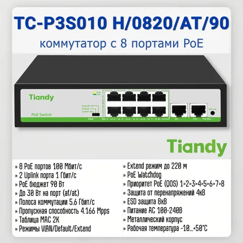 | Технические характеристики коммутатора TIANDY TC-P3S010 H | |