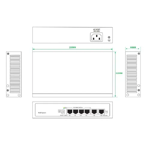 | Индикаторы: | PWR (питание), SW (режим DIP), 1-10 (Link/Data), POE Max (перегрузка) |