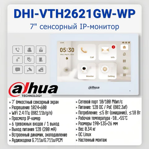 | Технические характеристики монитора Dahua DHI-VTH2621GW-WP | |