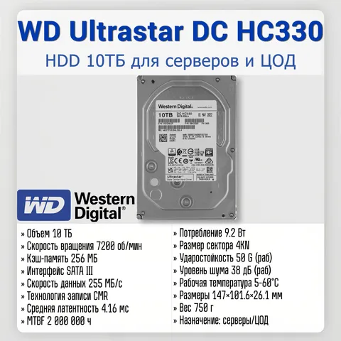 - Жесткий диск WD Ultrastar DC HC330 10ТБ; - упаковка производителя (антистатическая защита). |
