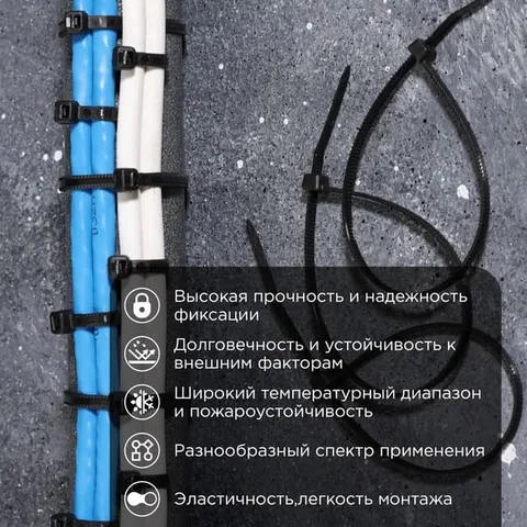 | - Кабельные стяжки REXANT 57-0201-4 (черные, 200×2.5 мм) — 100 шт. | |