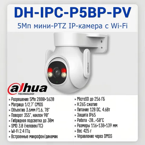 | Технические характеристики камеры Dahua DH-IPC-P5BP-PV | |